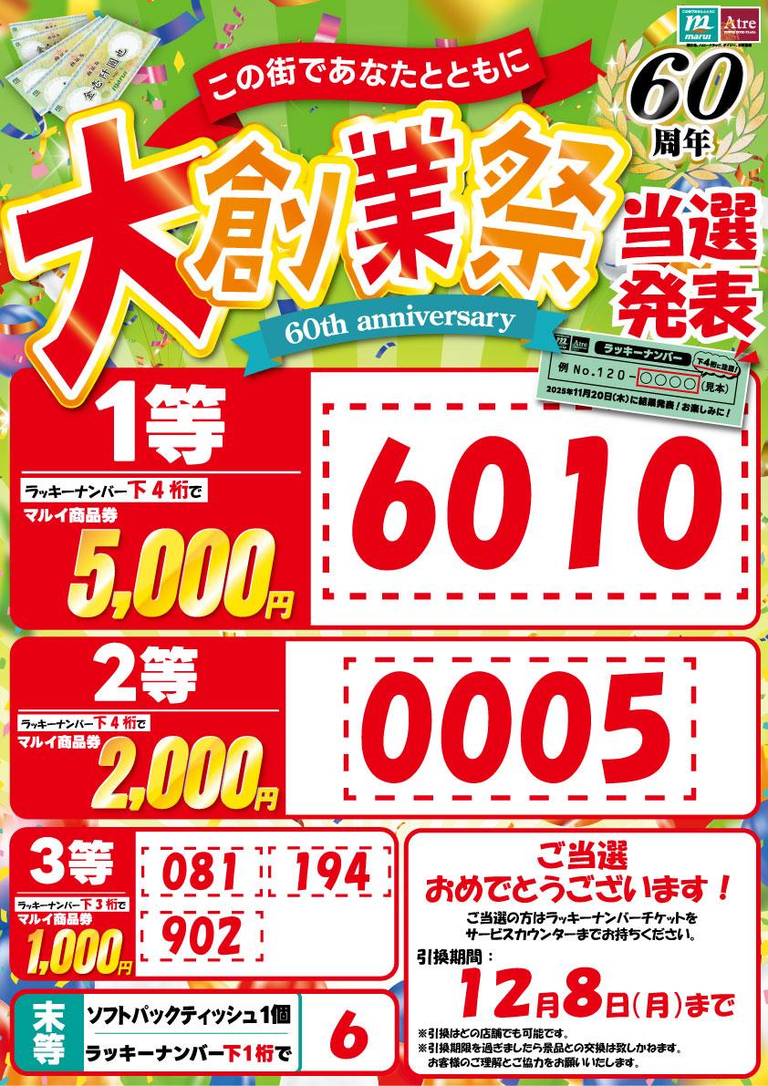 大創業祭ラッキーナンバー当選発表!
